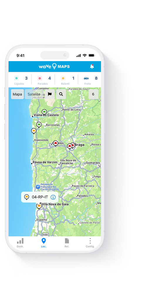 Aceda em tempo real à localização das suas viaturas e respetivos estados.