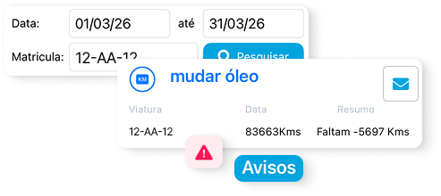 Consulte o relatório de avisos para uma dada viatura e entre datas.