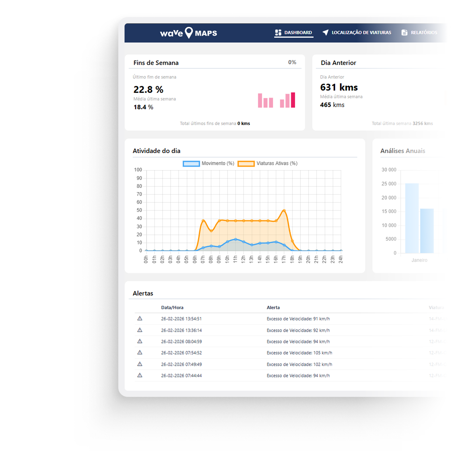 Monitorize a sua frota, receba alertas e avisos de manutenção.